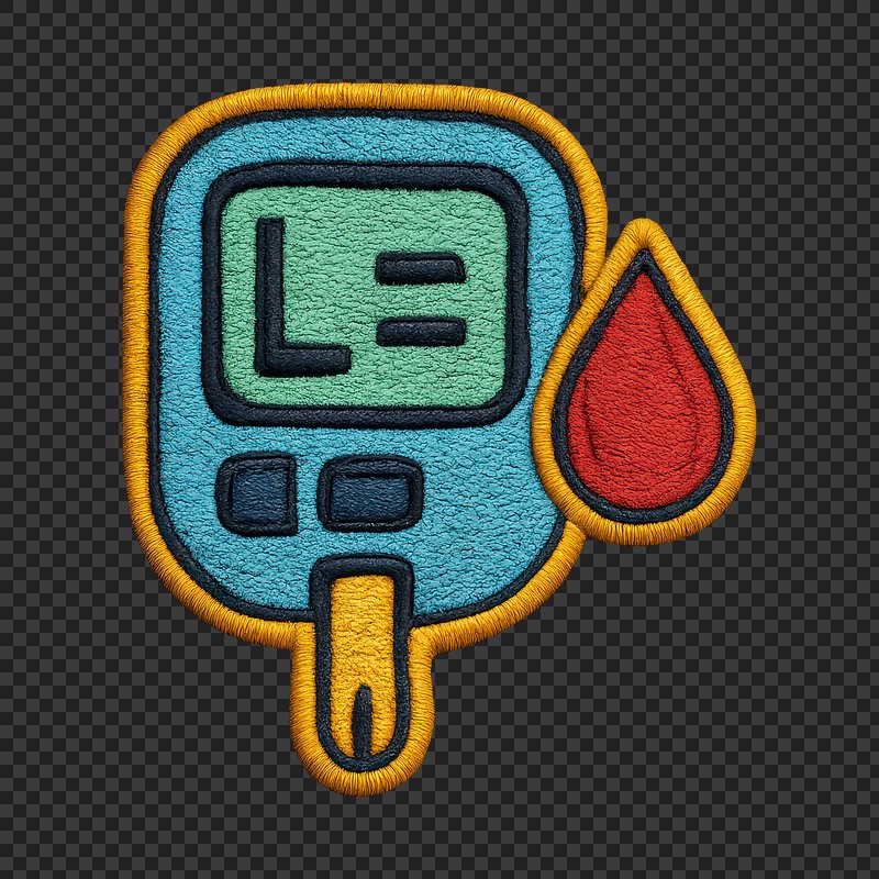 PNG Colorful embroidered glucose meter. https://www.rawpixel.com/image/21331060/png-colorful-embroidered-glucose-meterView license