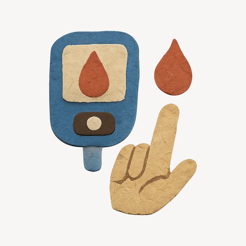 Blood glucose monitoring illustration https://www.rawpixel.com/image/21686137/blood-glucose-monitoring-illustrationView license