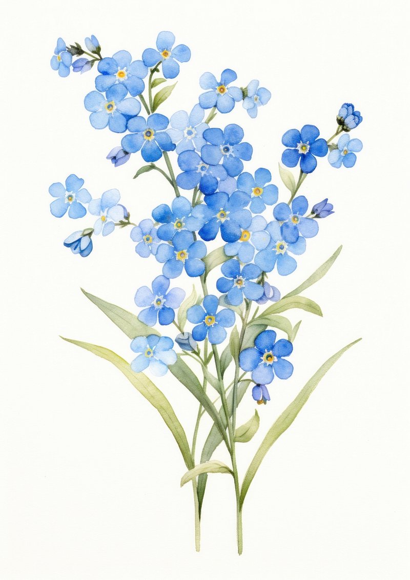 Flowers forget-me-not illustration watercolor. https://www.rawpixel.com/image/16916686/flowers-forget-me-not-illustration-watercolorView license