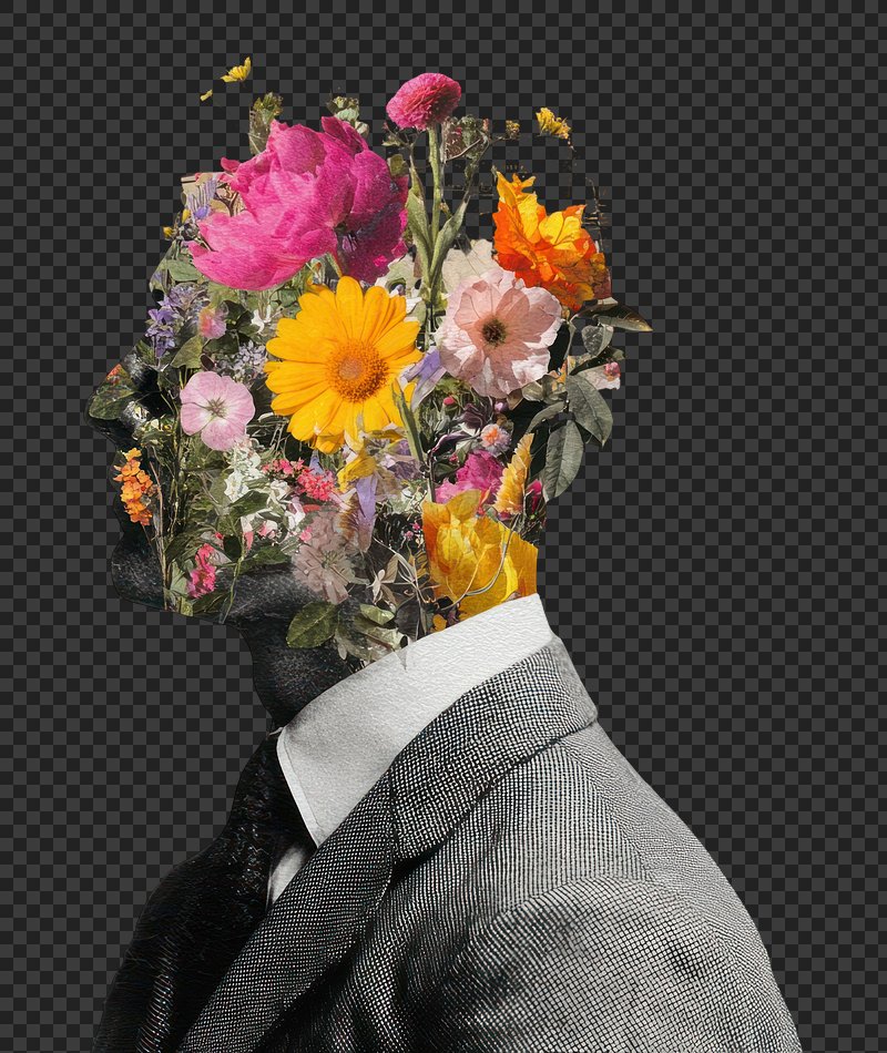 PNG Surreal floral-headed running figure. https://www.rawpixel.com/image/25243960/png-surreal-floral-headed-running-figureView license