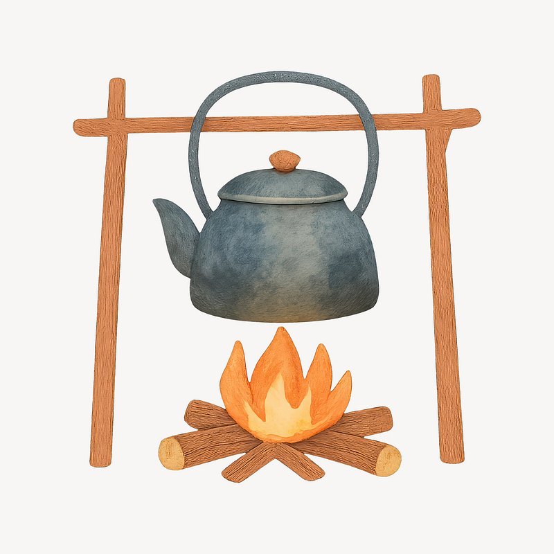 PNG Rustic teapot over campfire illustration. https://www.rawpixel.com/image/22623102/png-rustic-teapot-over-campfire-illustrationView license