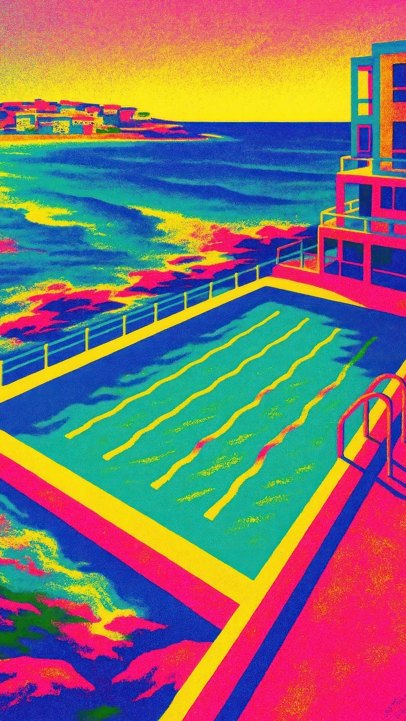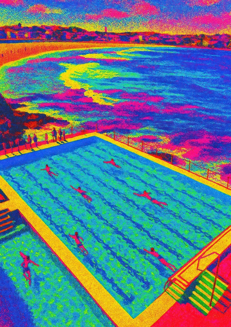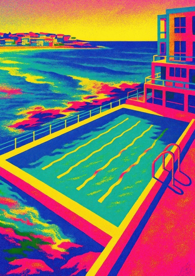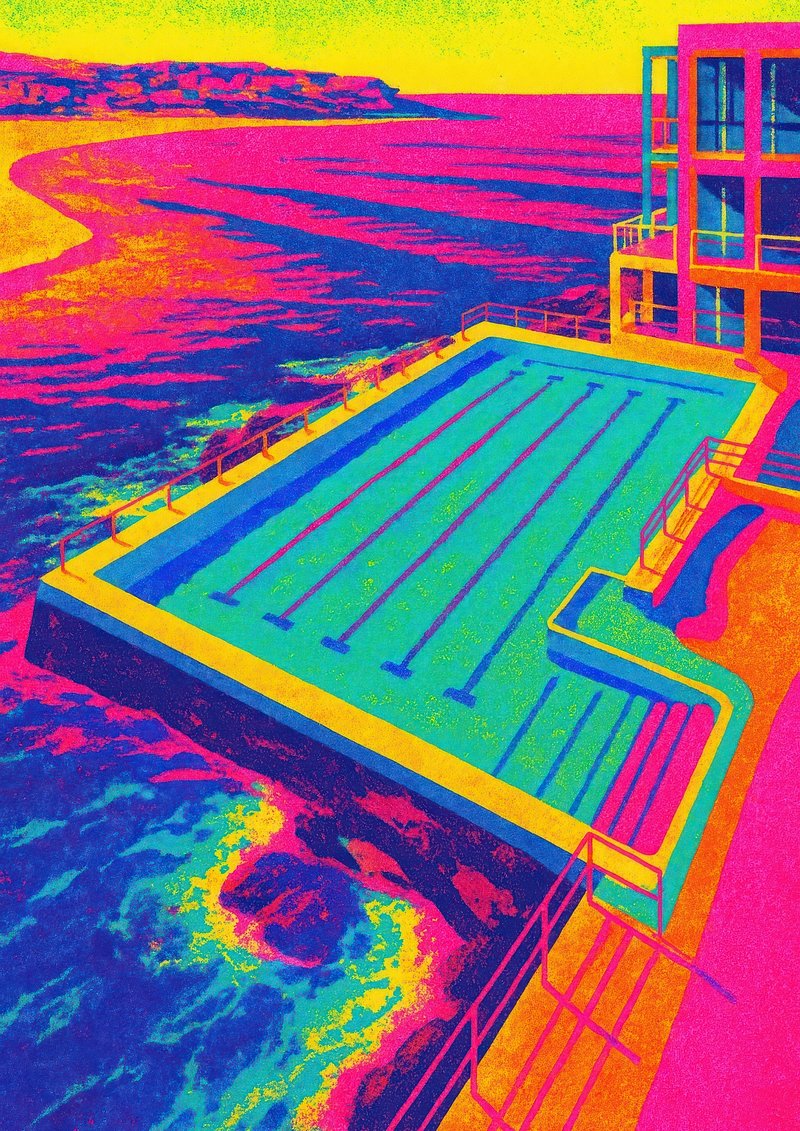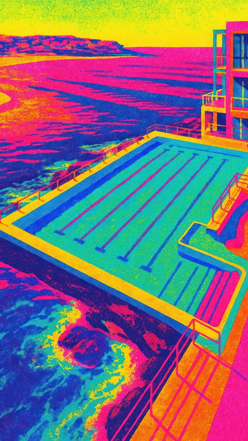 Vibrant coastal swimming pool art. https://www.rawpixel.com/image/20456632/vibrant-coastal-swimming-pool-artView license