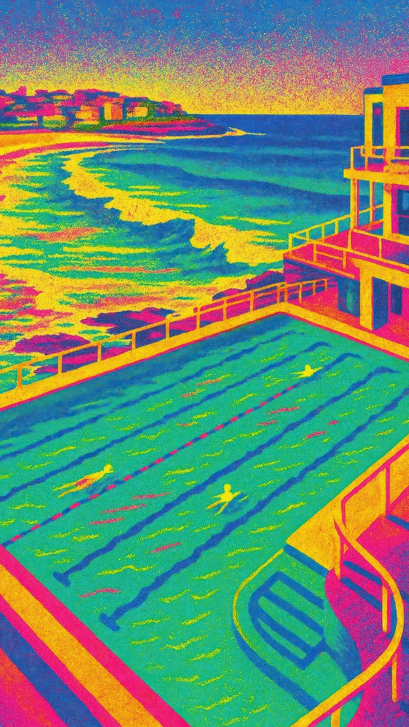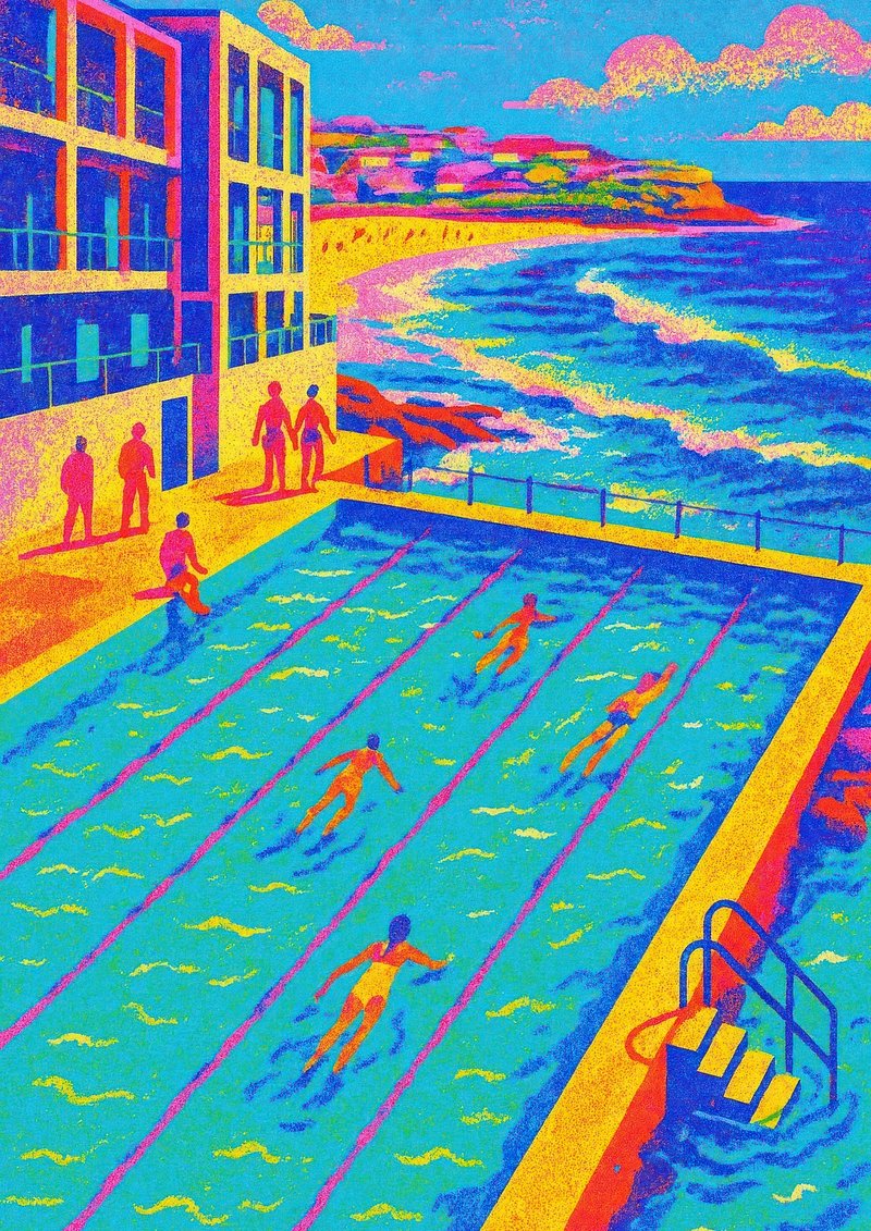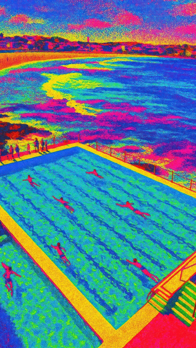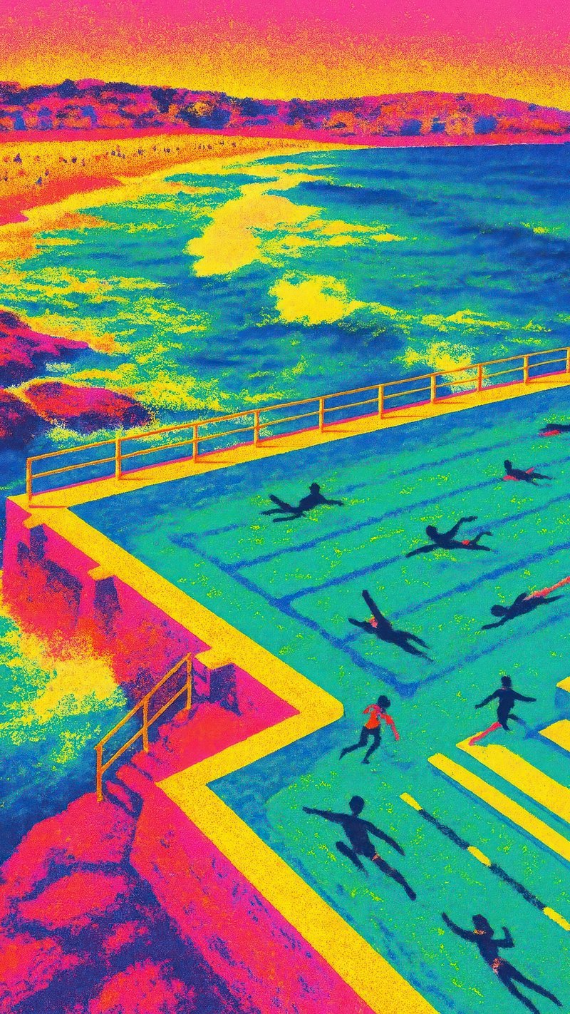 Vibrant coastal swimming pool art. https://www.rawpixel.com/image/20456632/vibrant-coastal-swimming-pool-artView license