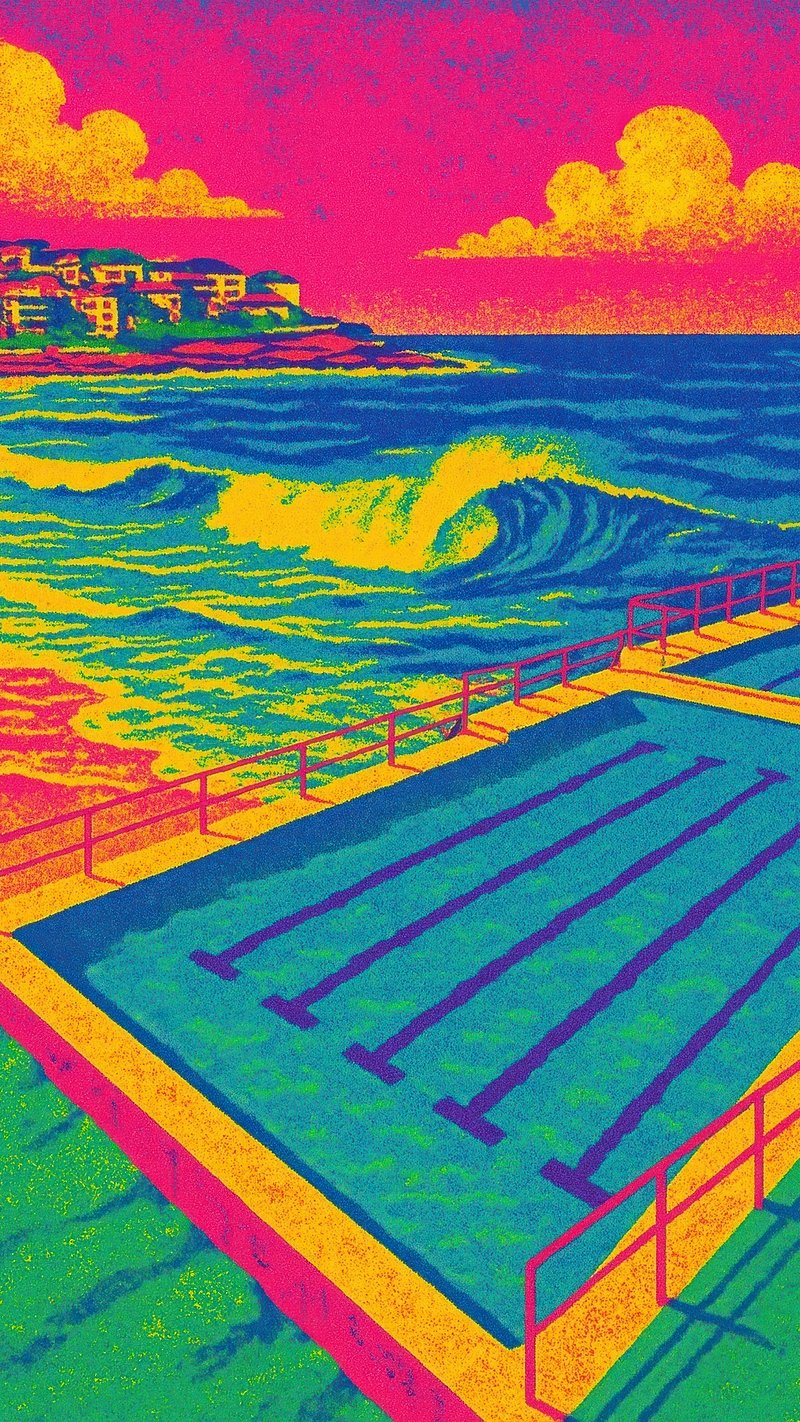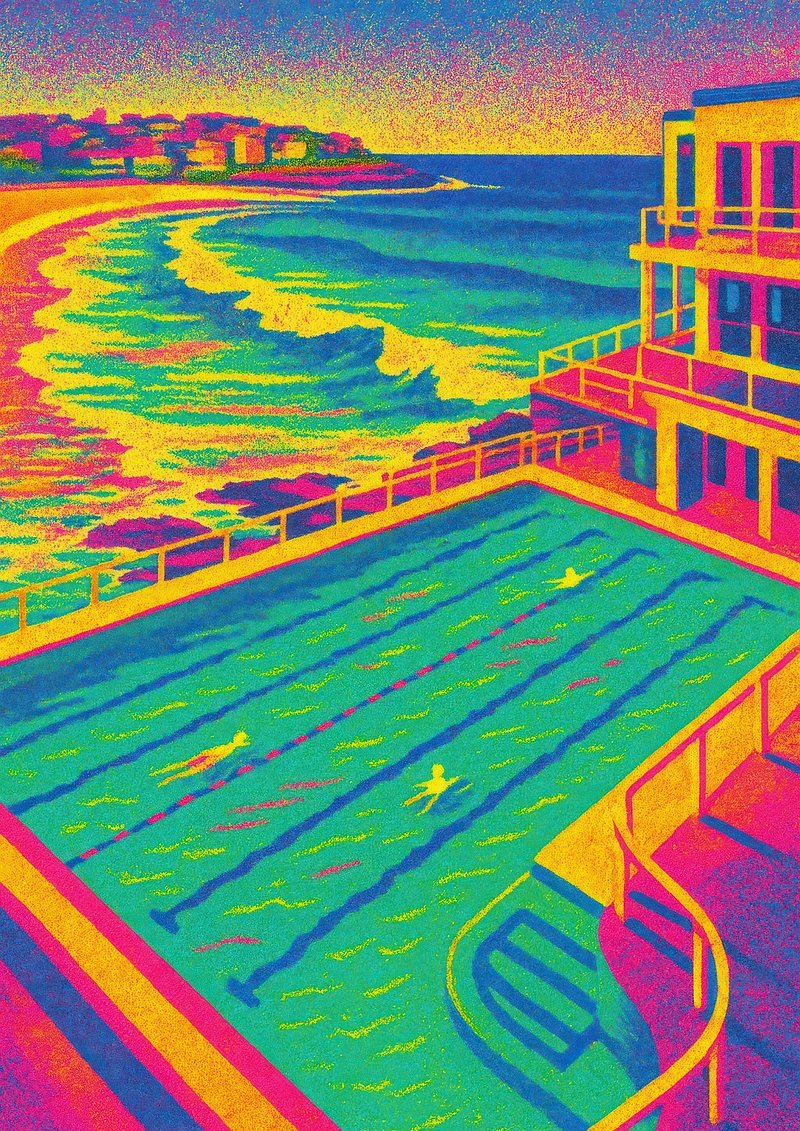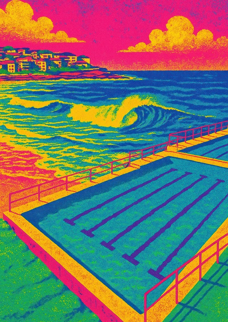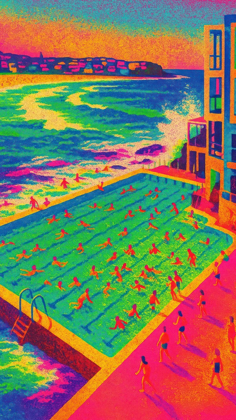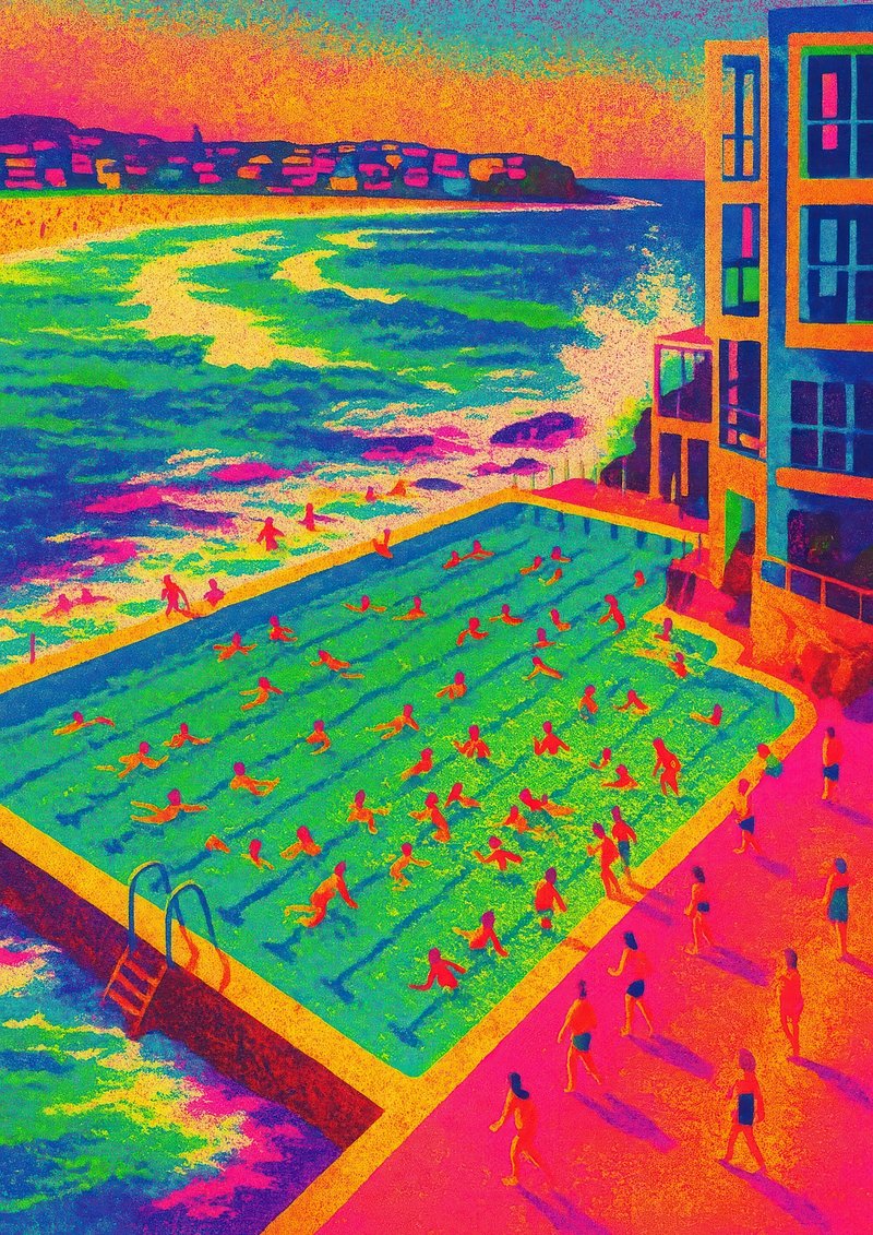 Vibrant coastal swimming pool art. https://www.rawpixel.com/image/20456632/vibrant-coastal-swimming-pool-artView license