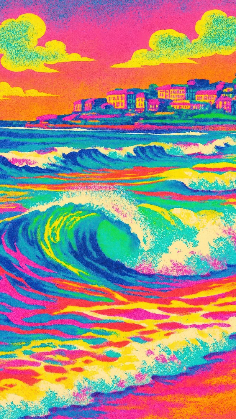 Vibrant psychedelic beach waves mobile wallpaper https://www.rawpixel.com/image/20438477/vibrant-psychedelic-beach-waves-mobile-wallpaperView license