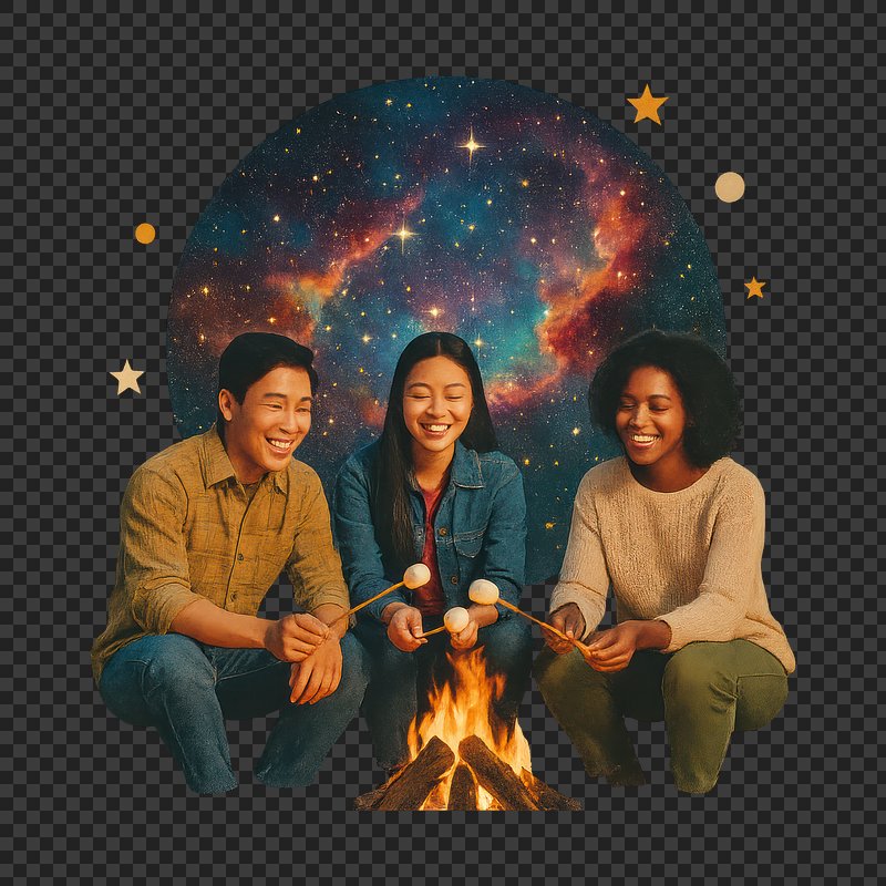 PNG Friends enjoying cosmic campfire scene. https://www.rawpixel.com/image/24269621/png-friends-enjoying-cosmic-campfire-sceneView license