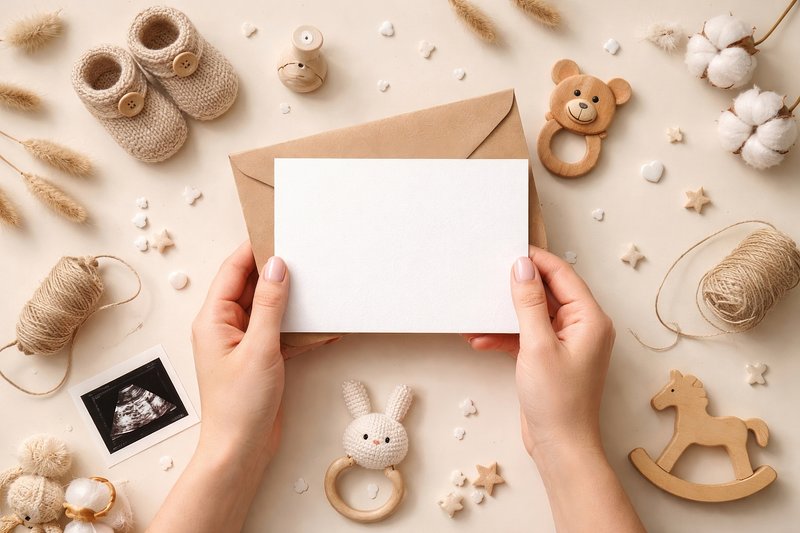 Charming baby announcement flatlay. https://www.rawpixel.com/image/25100780/charming-baby-announcement-flatlayView license