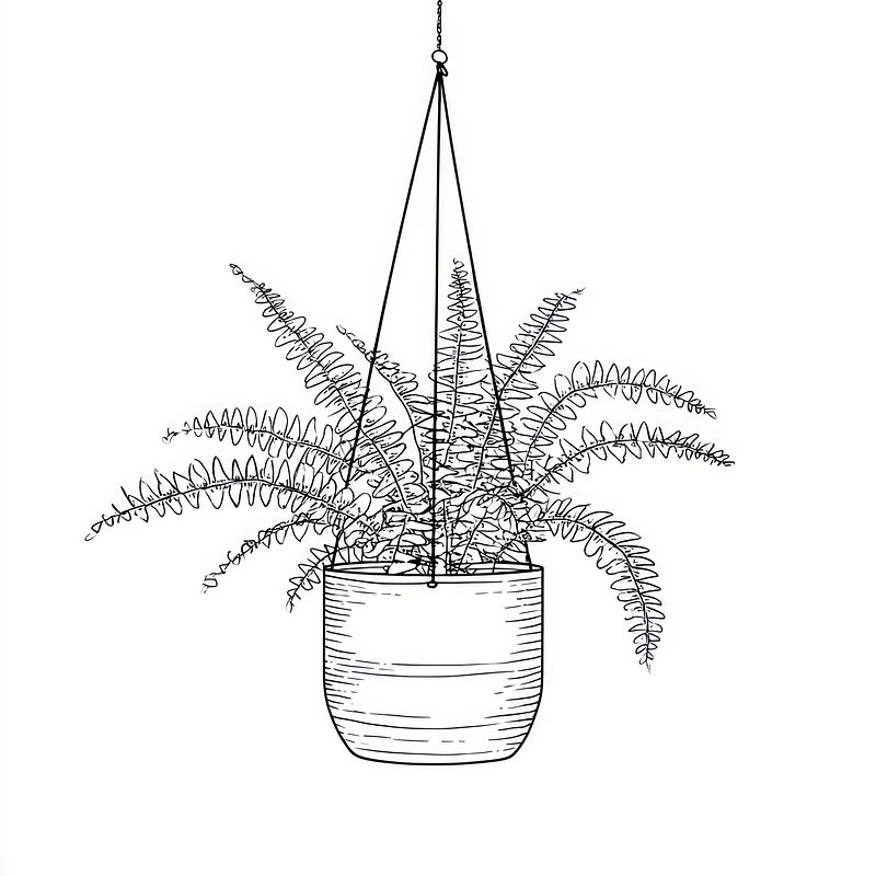 Boston Fern hanging plant pot fern illustration botanical. https://www.rawpixel.com/image/18682379/boston-fern-hanging-plant-pot-fern-illustration-botanicalView license