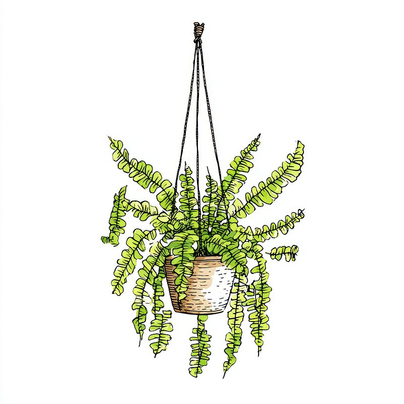 Boston Fern hanging plant pot fern art illustration. https://www.rawpixel.com/image/18682377/boston-fern-hanging-plant-pot-fern-art-illustrationView license