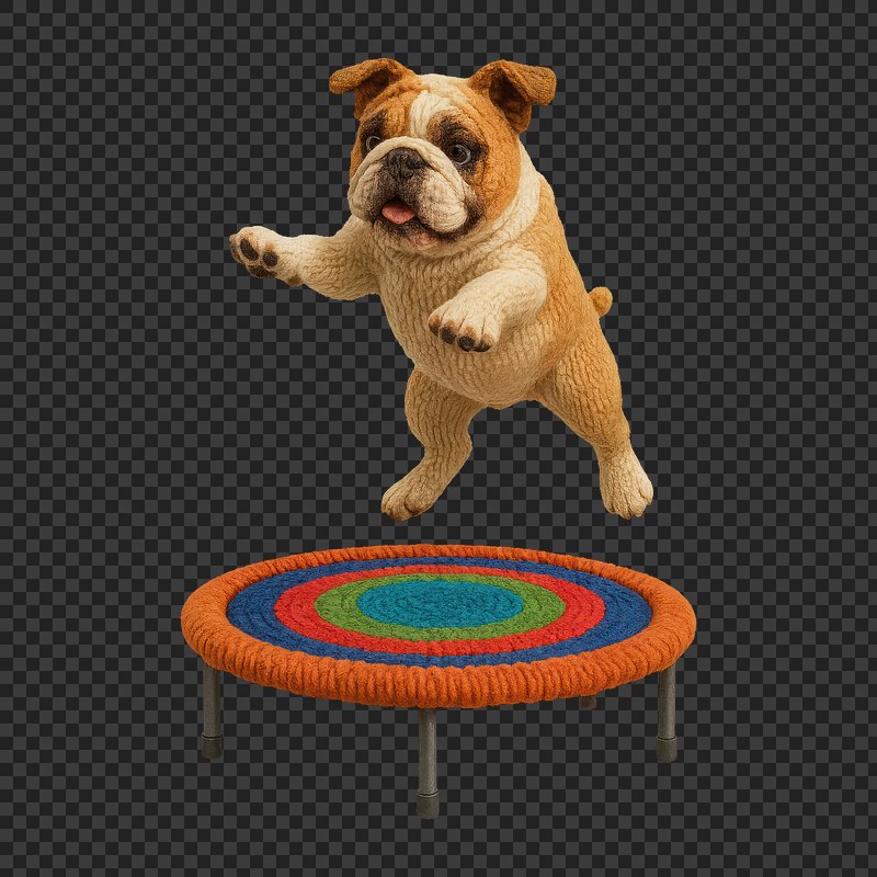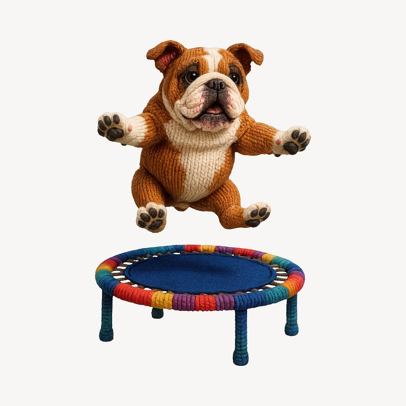 Playful knitted dog jumping trampoline. https://www.rawpixel.com/image/24534232/playful-knitted-dog-jumping-trampolineView license
