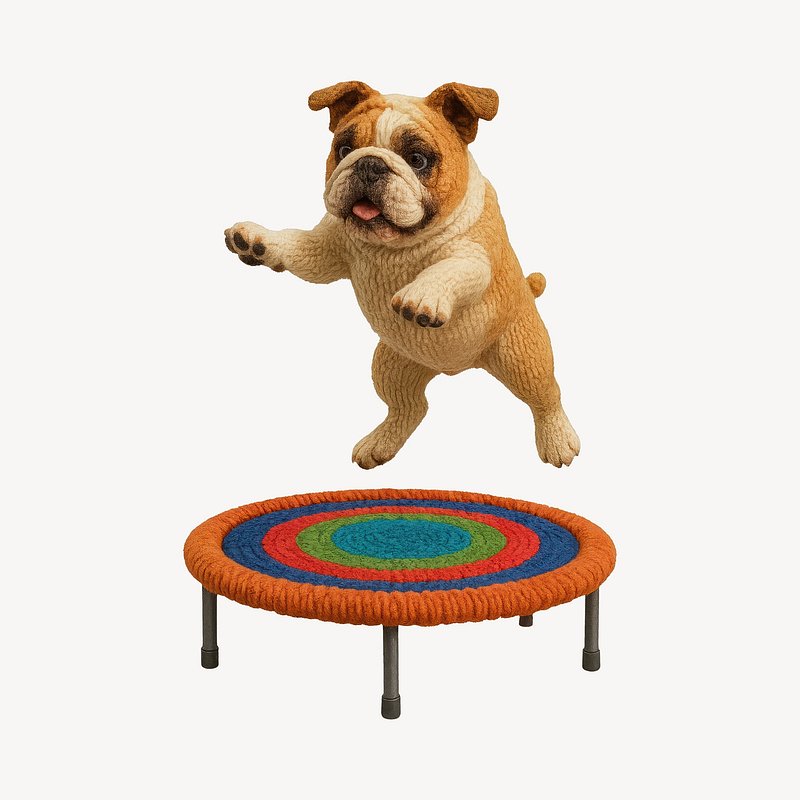 Bulldog jumping on trampoline https://www.rawpixel.com/image/24534644/bulldog-jumping-trampolineView license