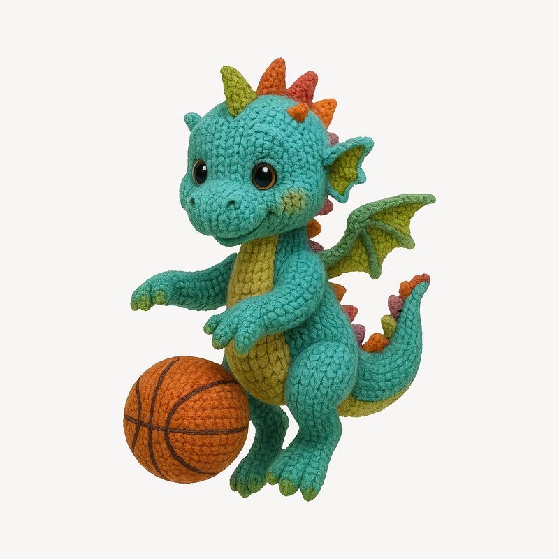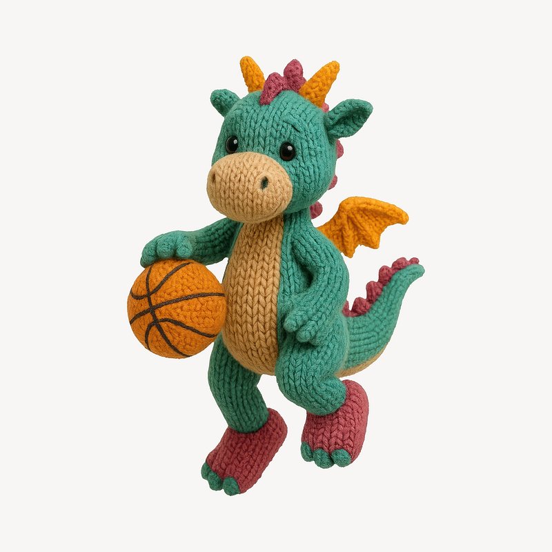 Cute knitted dragon playing basketball. https://www.rawpixel.com/image/24532036/cute-knitted-dragon-playing-basketballView license