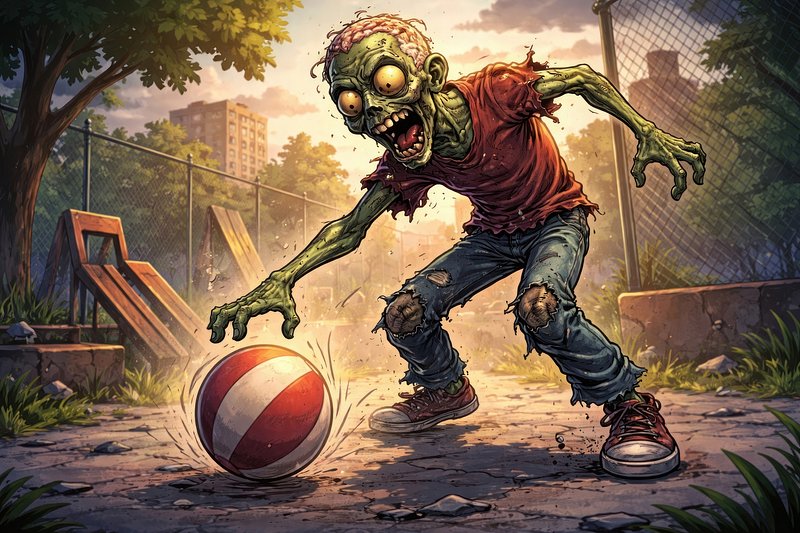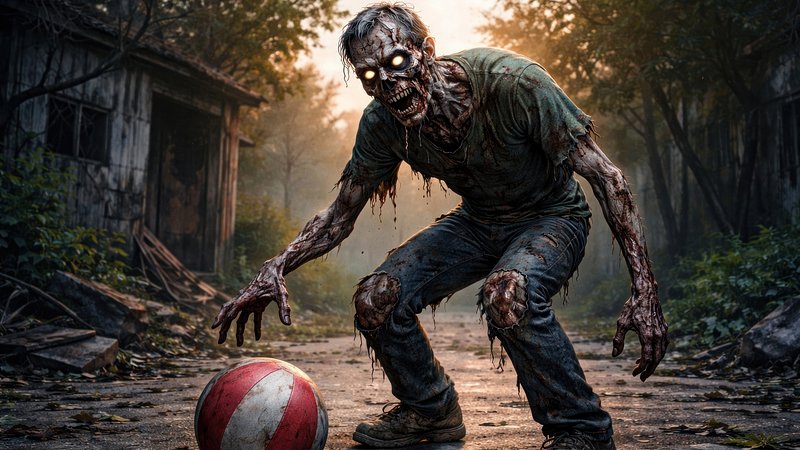 Zombie playing with ball outdoors. https://www.rawpixel.com/image/25175114/zombie-playing-with-ball-outdoorsView license