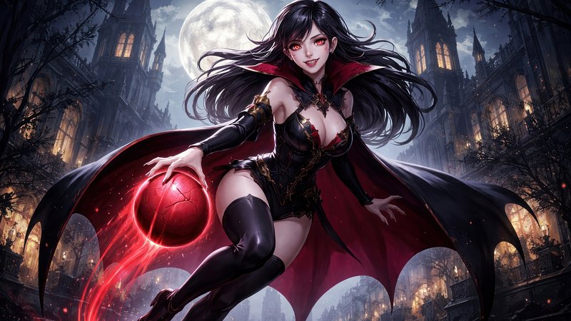 Vampire woman holding red orb. https://www.rawpixel.com/image/25691646/vampire-woman-holding-red-orbView license
