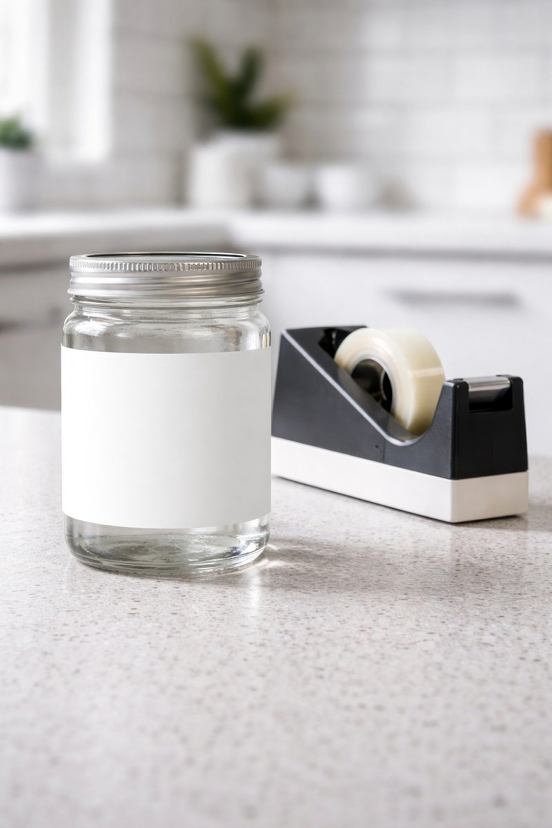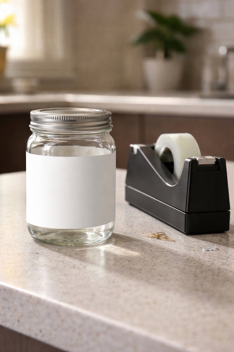 Jar and tape on countertop. https://www.rawpixel.com/image/25160787/jar-and-tape-countertopView license