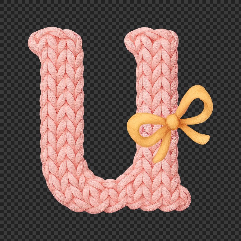 PNG Knitted letter U with bow https://www.rawpixel.com/image/24206421/png-knitted-letter-with-bowView license