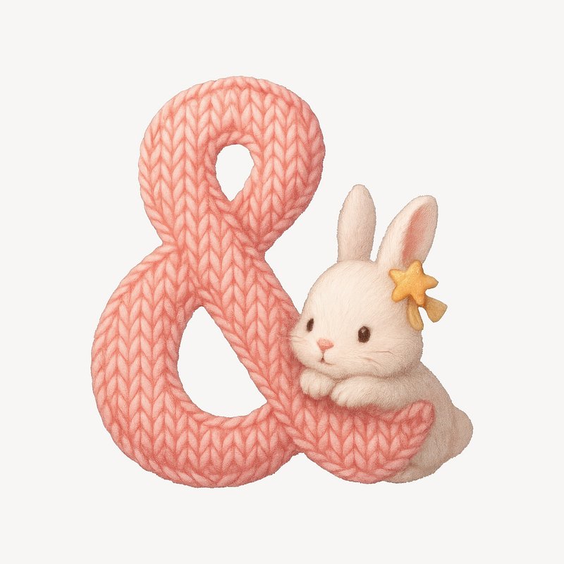 PNG Cute bunny with knitted ampersand. https://www.rawpixel.com/image/24006459/png-cute-bunny-with-knitted-ampersandView license