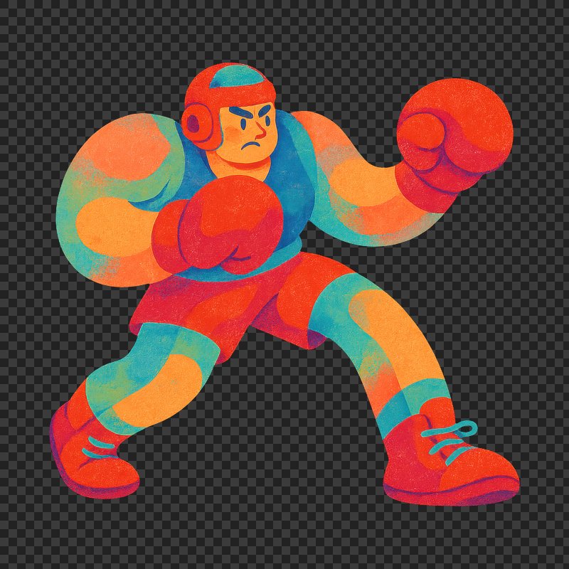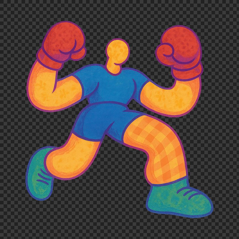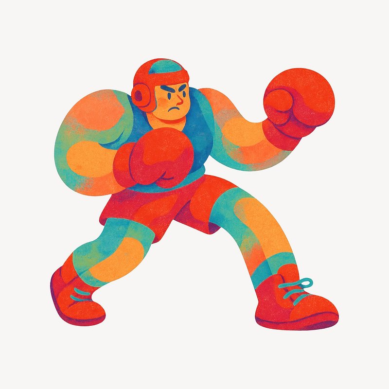 Colorful cartoon boxer character https://www.rawpixel.com/image/22119781/colorful-cartoon-boxer-characterView license