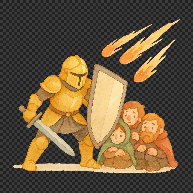 PNG Knight shields villagers from meteors. https://www.rawpixel.com/image/19273531/png-knight-shields-villagers-from-meteorsView license