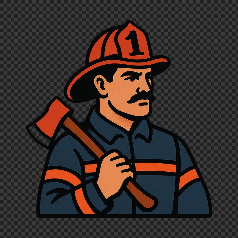 PNG Firefighter illustration with axe. https://www.rawpixel.com/image/22156181/png-firefighter-illustration-with-axeView license