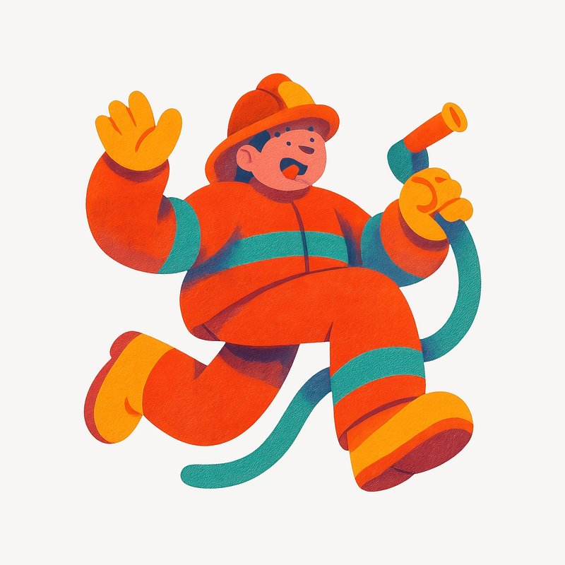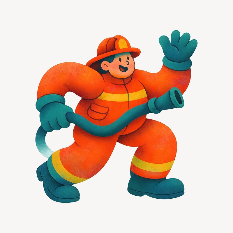 Cartoon firefighter holding hose https://www.rawpixel.com/image/22397221/cartoon-firefighter-holding-hoseView license