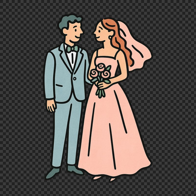 PNG Charming wedding couple illustration. https://www.rawpixel.com/image/21124715/png-charming-wedding-couple-illustrationView license