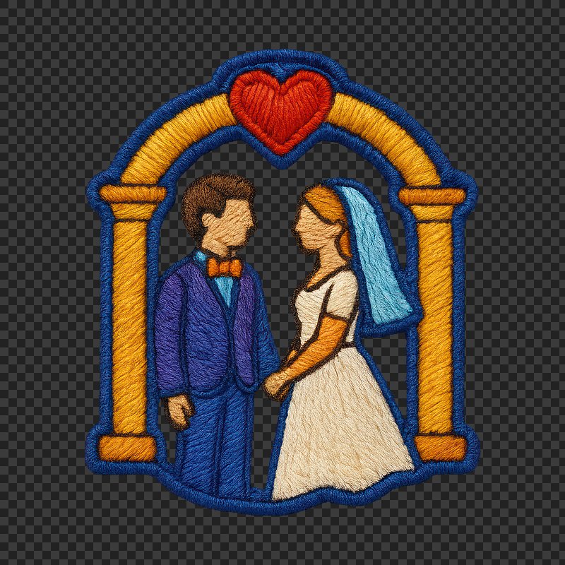 PNG Embroidered wedding couple patch https://www.rawpixel.com/image/21260914/png-embroidered-wedding-couple-patchView license