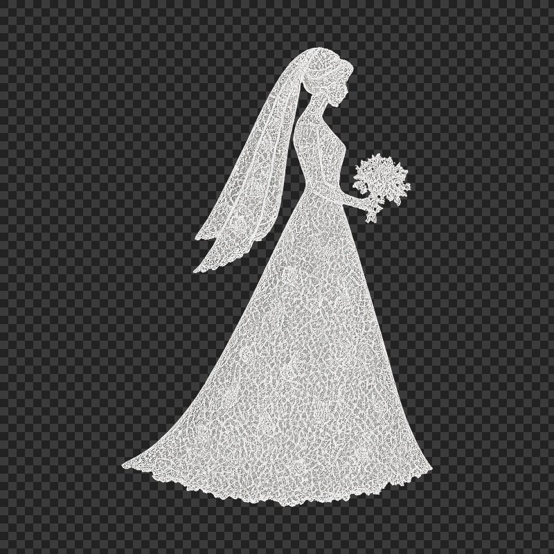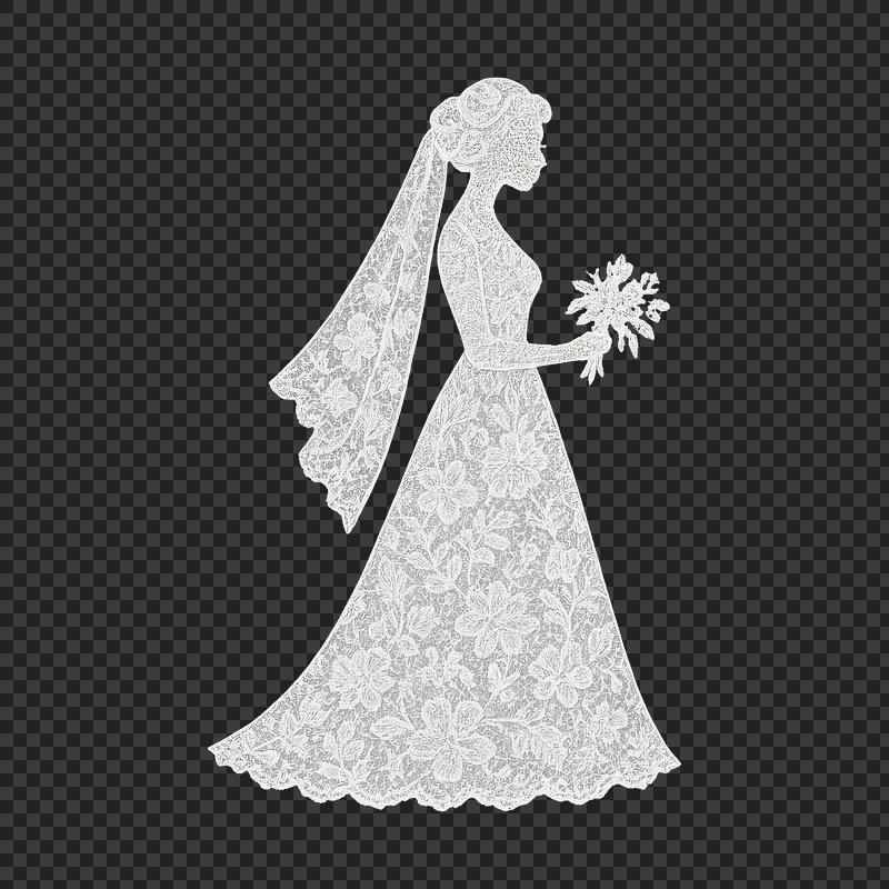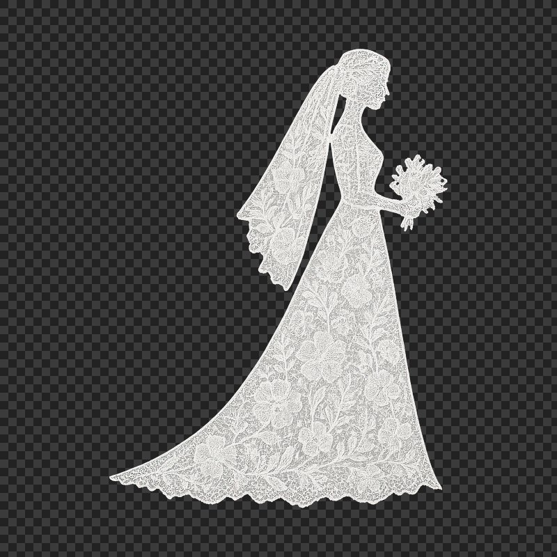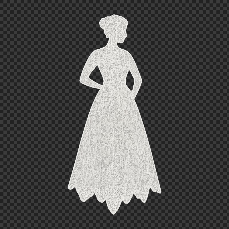 PNG Elegant lace wedding dress silhouette. https://www.rawpixel.com/image/23556757/png-elegant-lace-wedding-dress-silhouetteView license