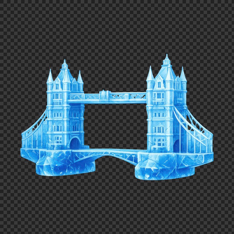 PNG Blue ice Tower Bridge sculpture. https://www.rawpixel.com/image/25320393/png-blue-ice-tower-bridge-sculptureView license