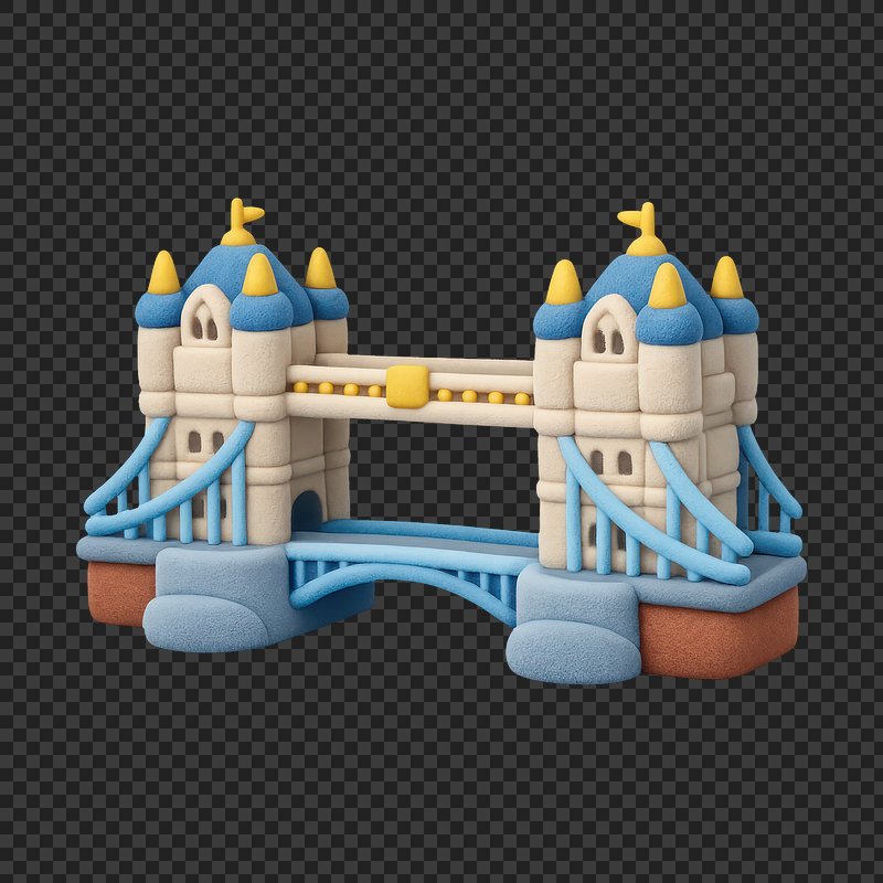 PNG Whimsical clay Tower Bridge illustration. https://www.rawpixel.com/image/25779178/png-whimsical-clay-tower-bridge-illustrationView license