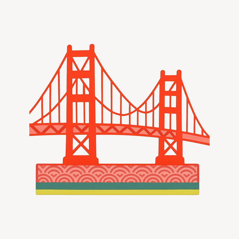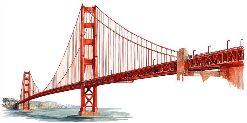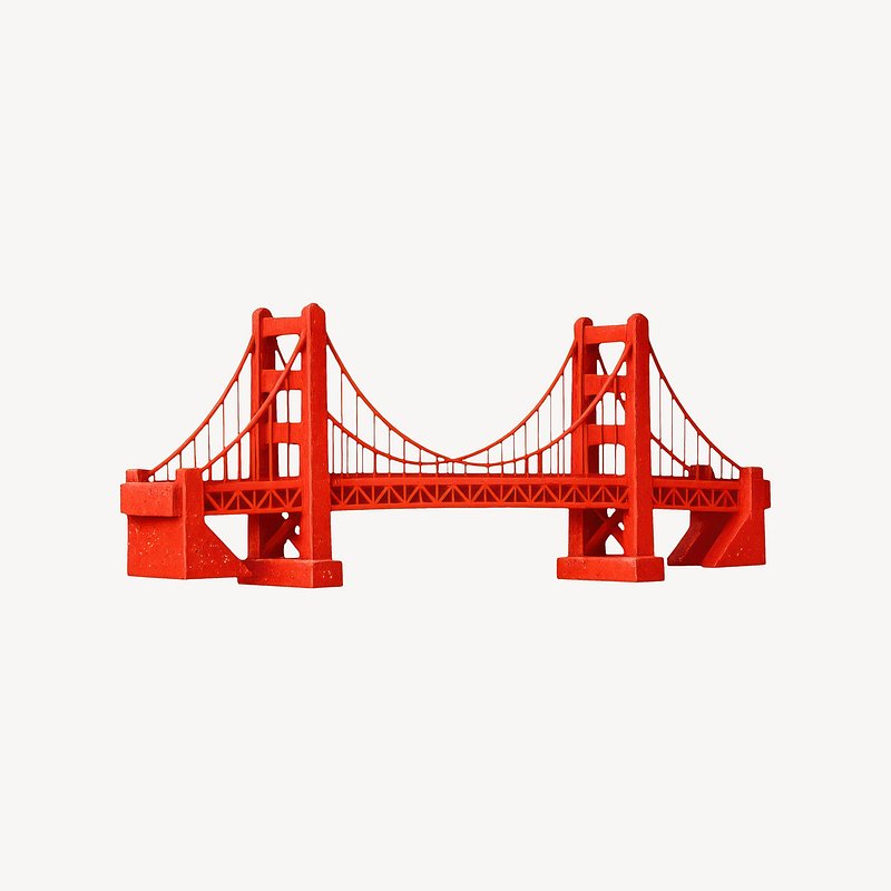 Iconic red suspension bridge illustration. https://www.rawpixel.com/image/25012381/iconic-red-suspension-bridge-illustrationView license