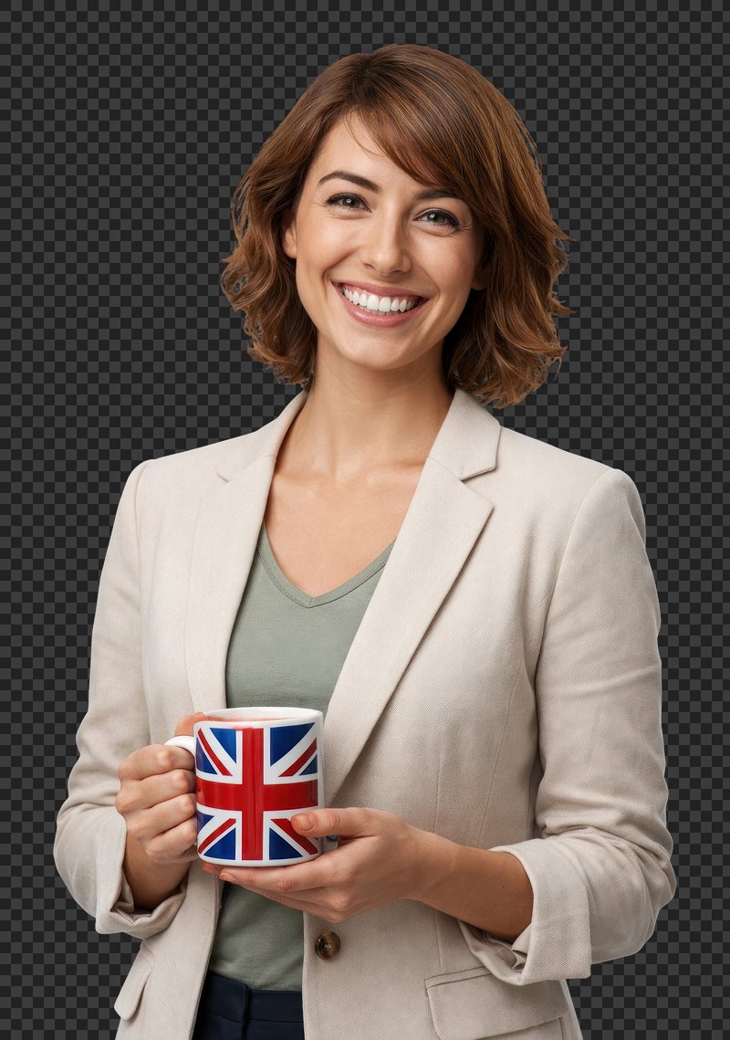 PNG Smiling woman holding British mug. https://www.rawpixel.com/image/25620723/png-smiling-woman-holding-british-mugView license