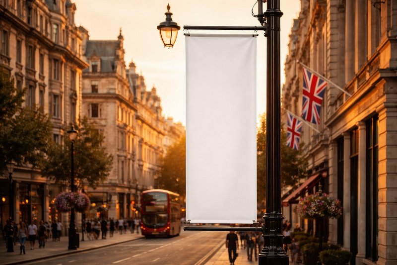 Blank banner on city street. https://www.rawpixel.com/image/25190905/blank-banner-city-streetView license