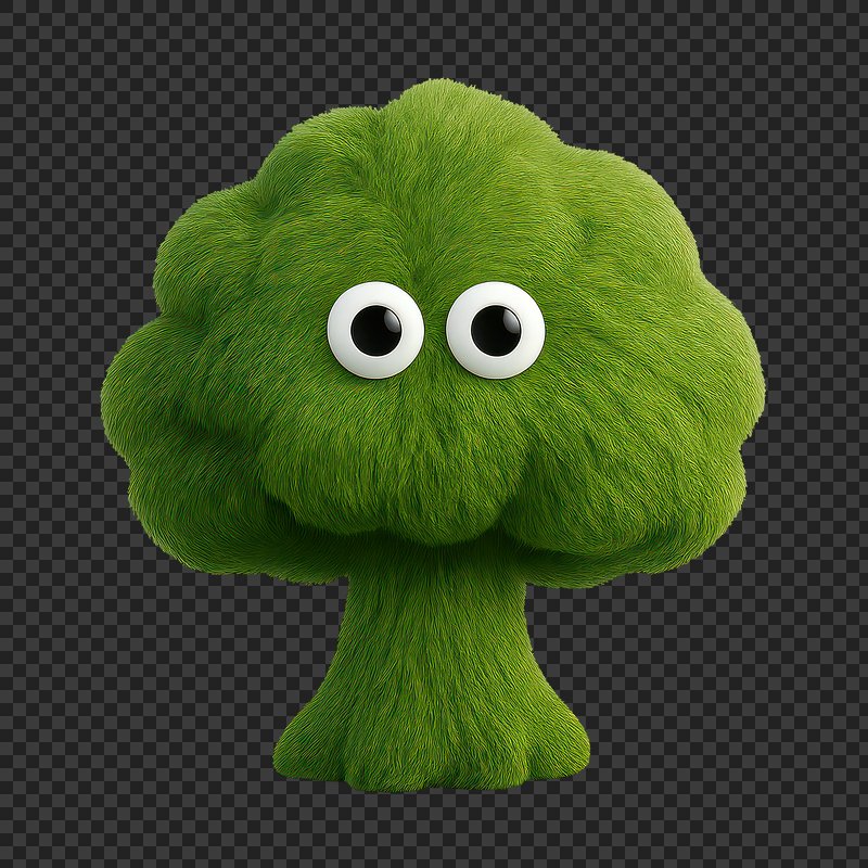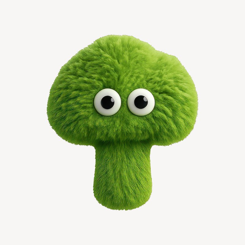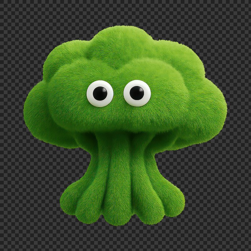Fuzzy broccoli with googly eyes. https://www.rawpixel.com/image/24711004/fuzzy-broccoli-with-googly-eyesView license