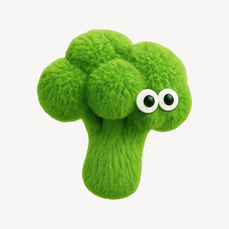 Fuzzy green broccoli character illustration. https://www.rawpixel.com/image/24710209/fuzzy-green-broccoli-character-illustrationView license