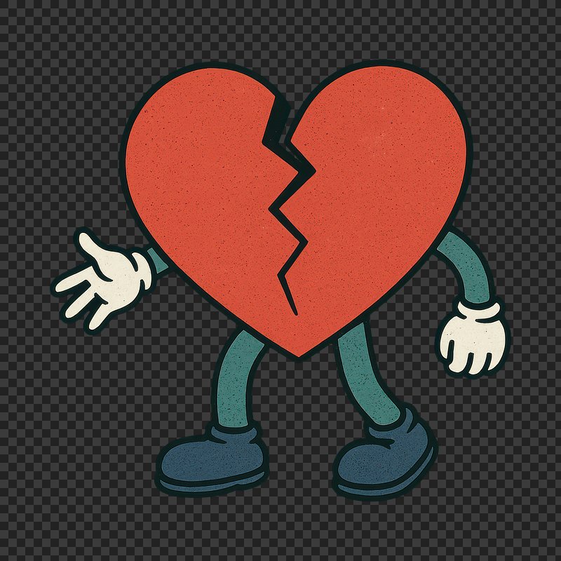 Cartoon heart with broken design. https://www.rawpixel.com/image/24718250/cartoon-heart-with-broken-designView license