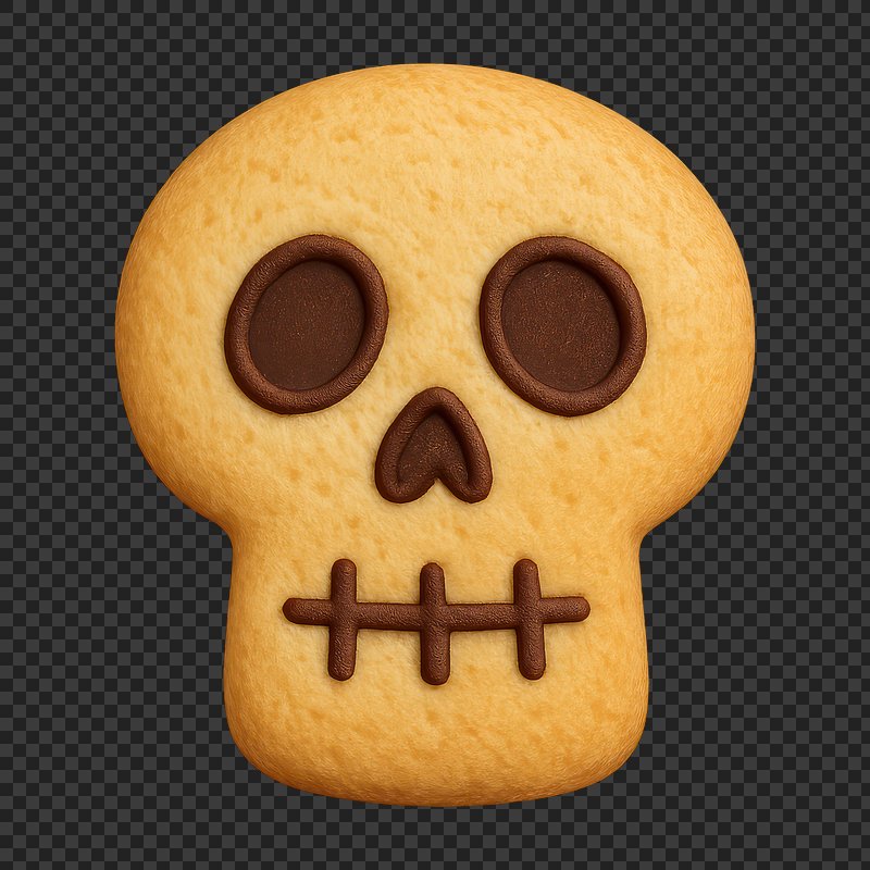 PNG Halloween skull-shaped cookie design. https://www.rawpixel.com/image/24241653/png-halloween-skull-shaped-cookie-designView license