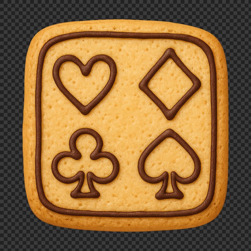 PNG Cookie with card suit symbols. https://www.rawpixel.com/image/24230525/png-cookie-with-card-suit-symbolsView license