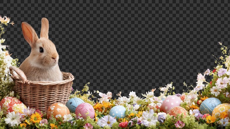 PNG Rabbit sitting in a basket on the meadow background easter eggs. https://www.rawpixel.com/image/24954549/png-rabbit-sitting-basket-the-meadow-background-easter-eggsView license