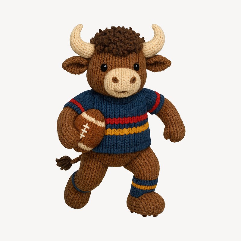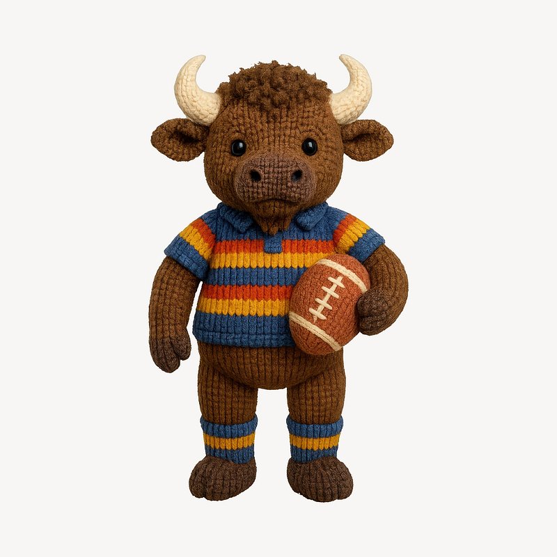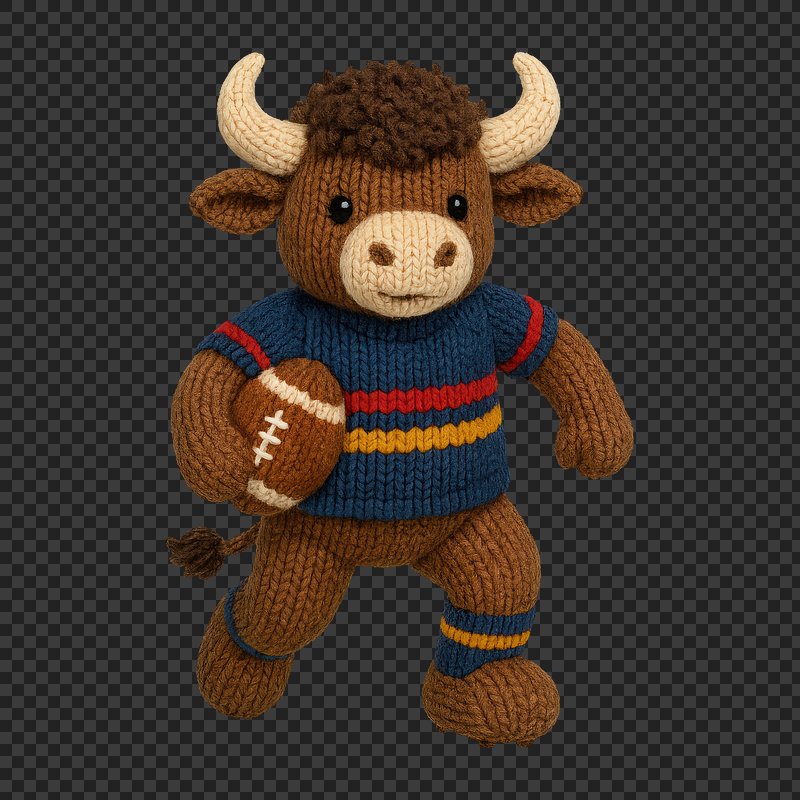 PNG Knitted buffalo toy football. https://www.rawpixel.com/image/24444020/png-knitted-buffalo-toy-footballView license