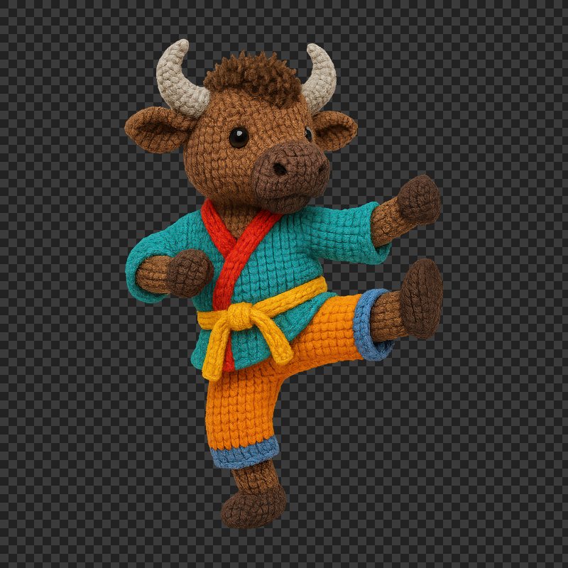 PNG Crochet bull practicing martial arts. https://www.rawpixel.com/image/24444062/png-crochet-bull-practicing-martial-artsView license