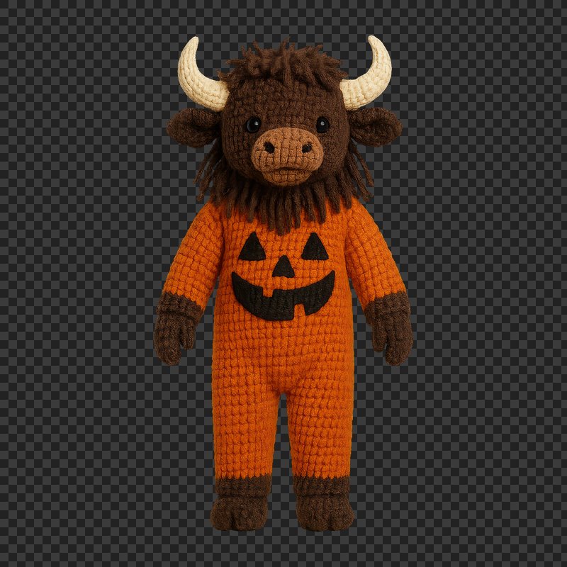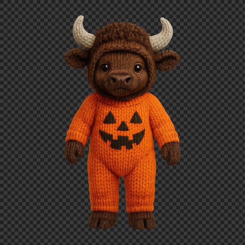PNG Cute knitted Halloween bull toy. https://www.rawpixel.com/image/24444027/png-cute-knitted-halloween-bull-toyView license