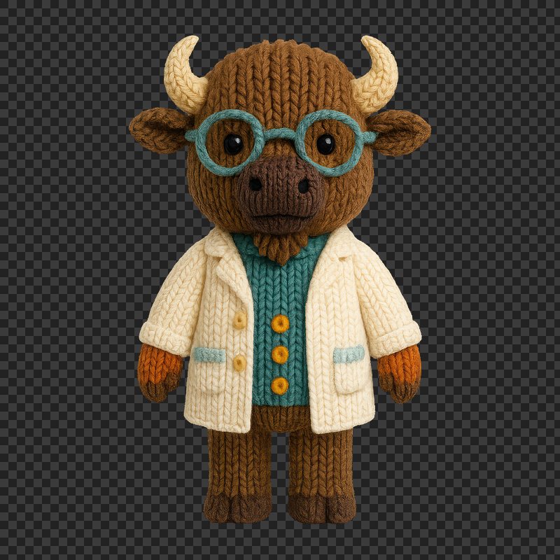 PNG Crochet buffalo in business attire. https://www.rawpixel.com/image/24442292/png-crochet-buffalo-business-attireView license
