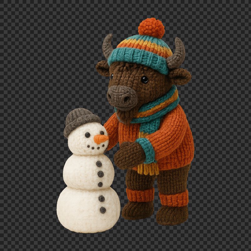 PNG Cute knitted buffalo snowman. https://www.rawpixel.com/image/24444345/png-cute-knitted-buffalo-snowmanView license