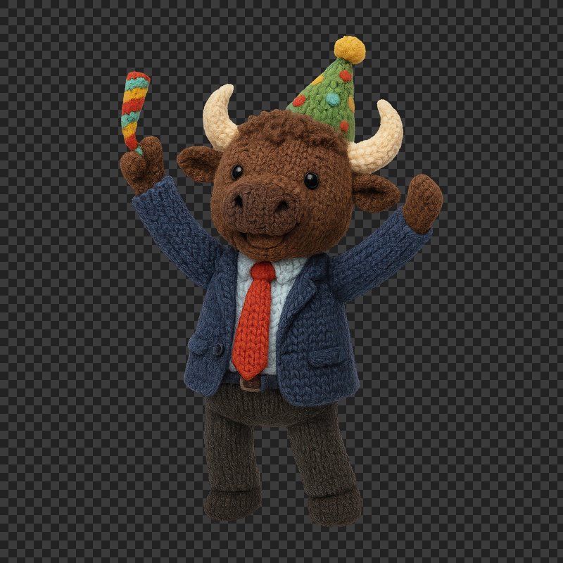 PNG Crocheted bull celebrating joyfully. https://www.rawpixel.com/image/24445873/png-crocheted-bull-celebrating-joyfullyView license