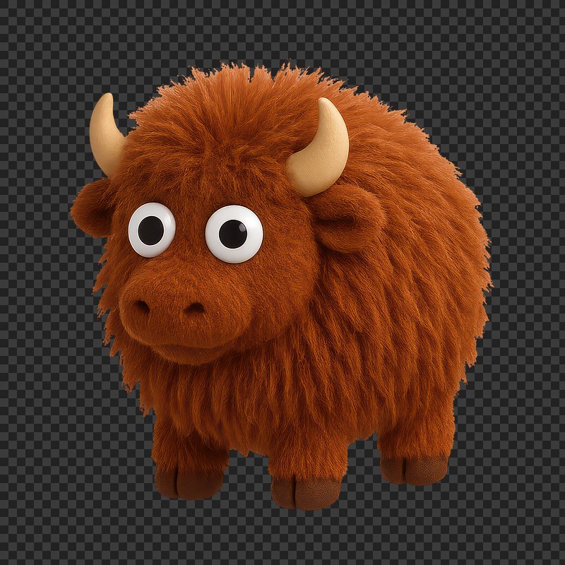 PNG Cute fluffy cartoon bison toy https://www.rawpixel.com/image/24644879/png-cute-fluffy-cartoon-bison-toyView license