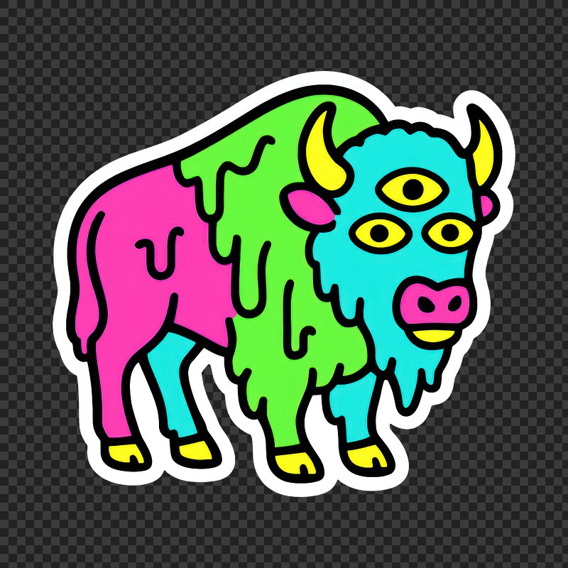 PNG Colorful psychedelic buffalo illustration. https://www.rawpixel.com/image/23940464/png-colorful-psychedelic-buffalo-illustrationView license