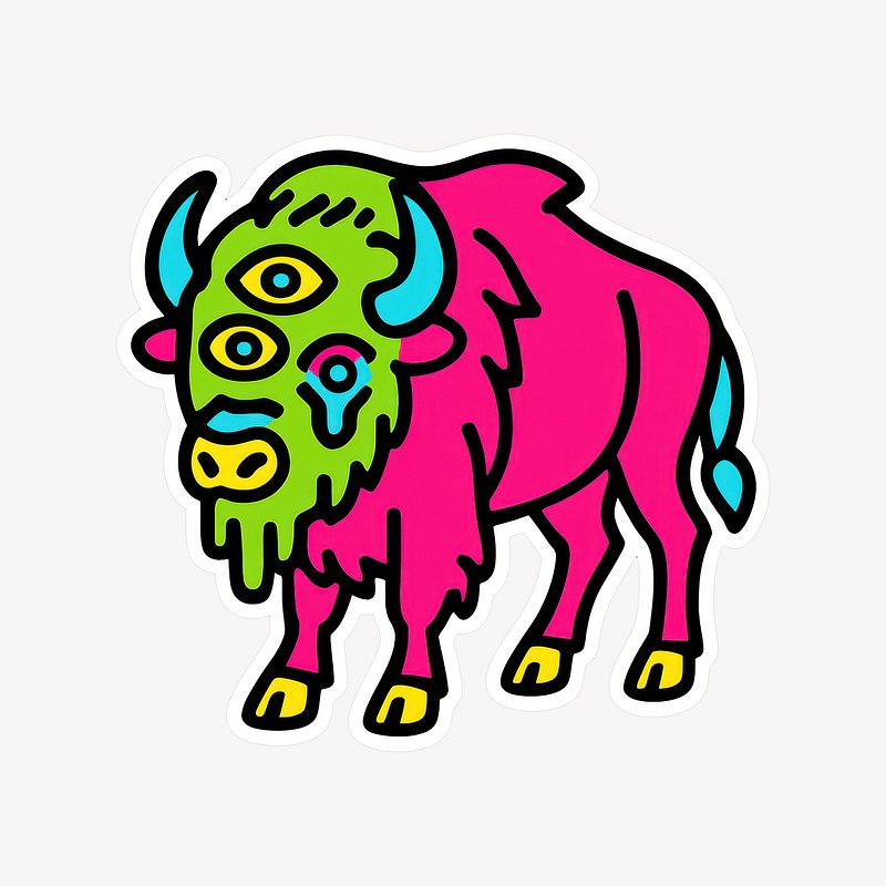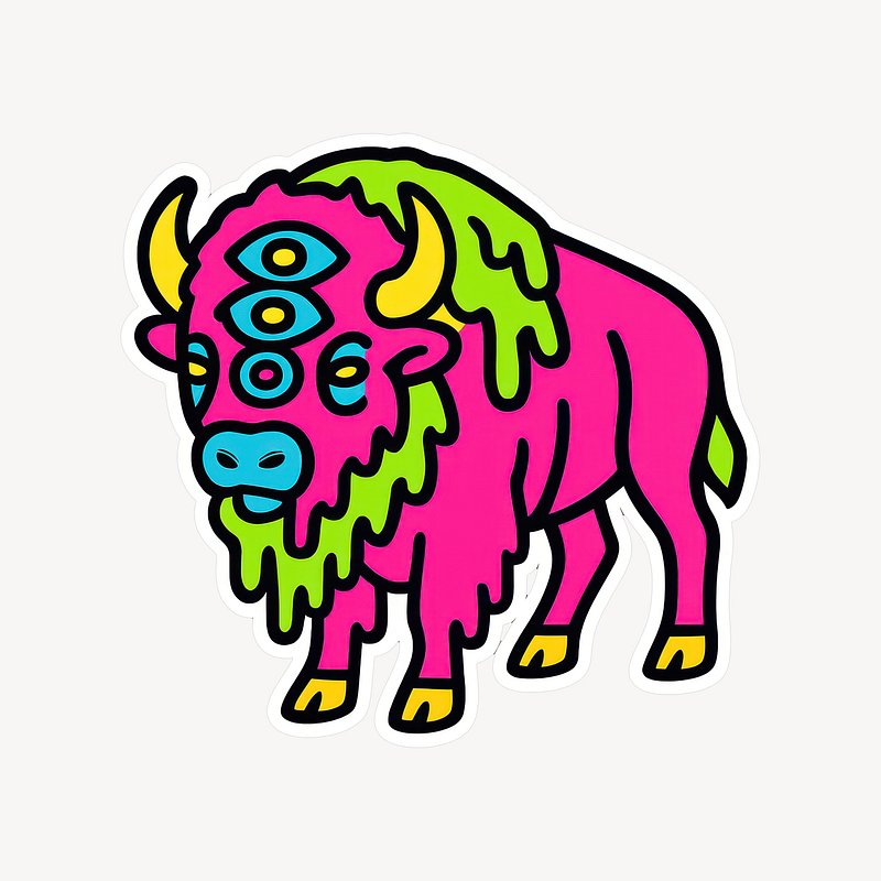 Colorful psychedelic bison illustration https://www.rawpixel.com/image/24077001/colorful-psychedelic-bison-illustrationView license