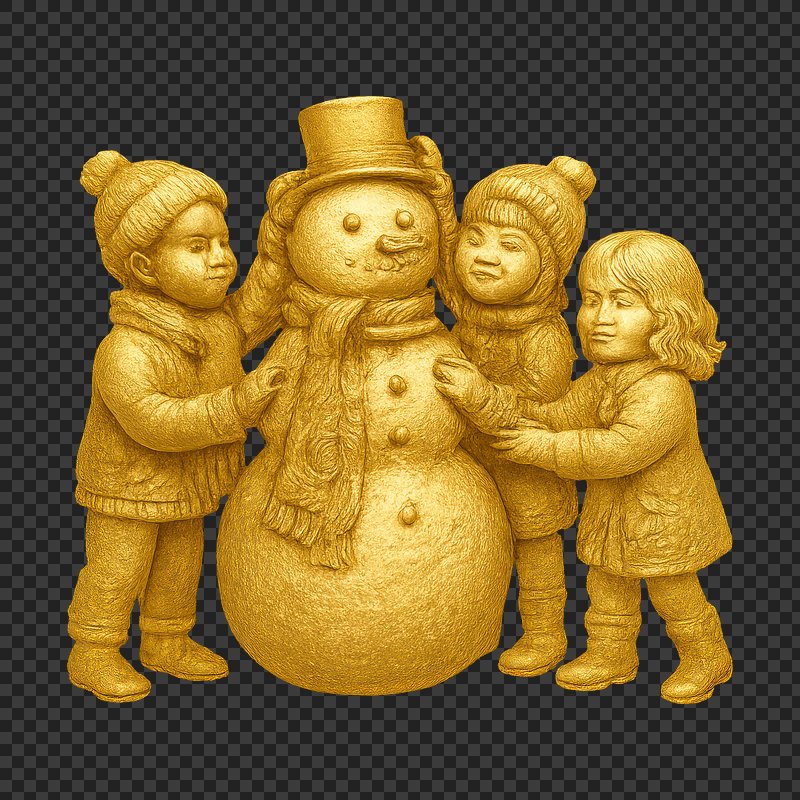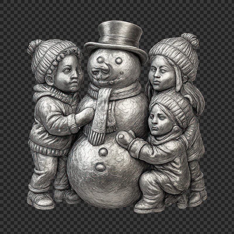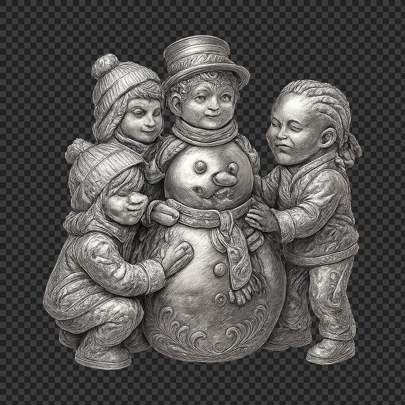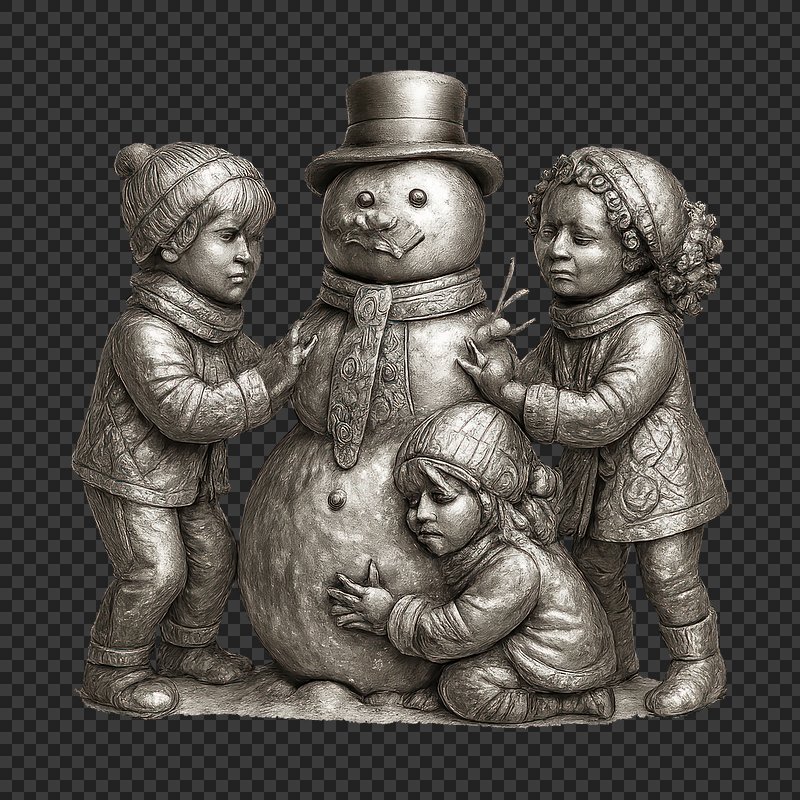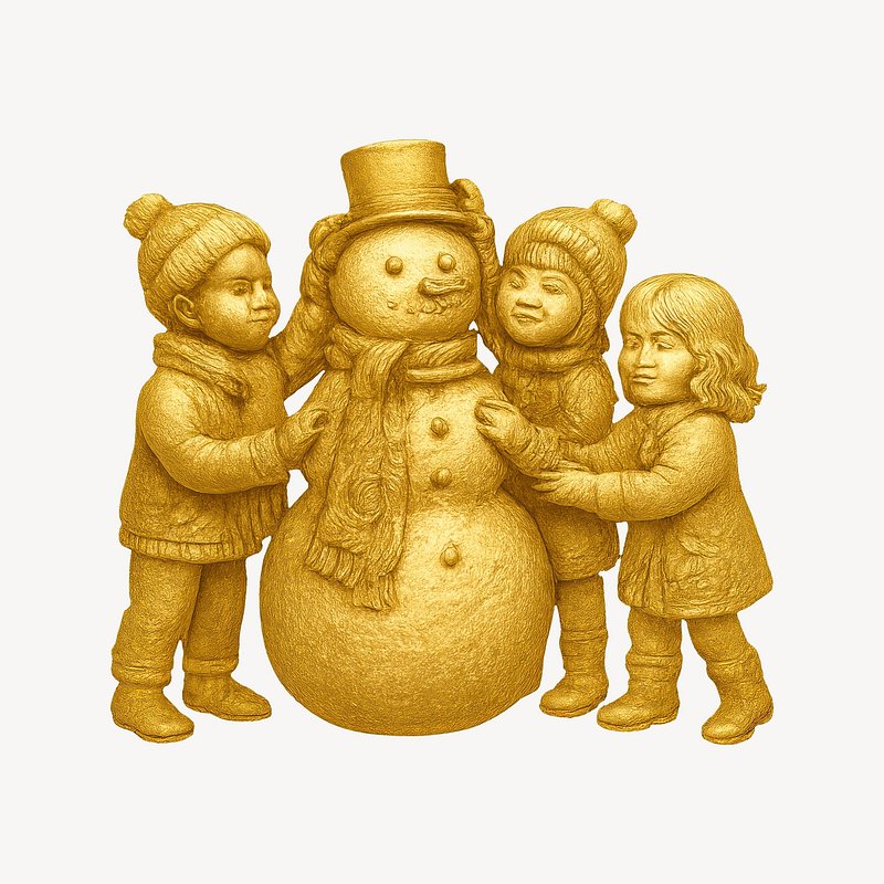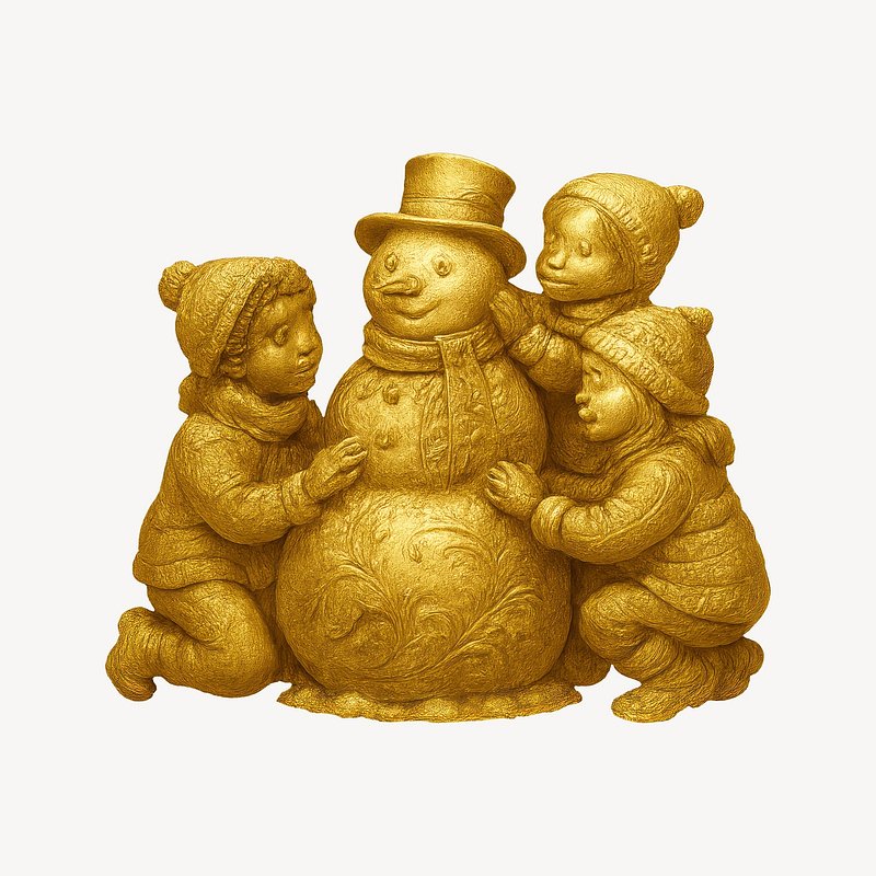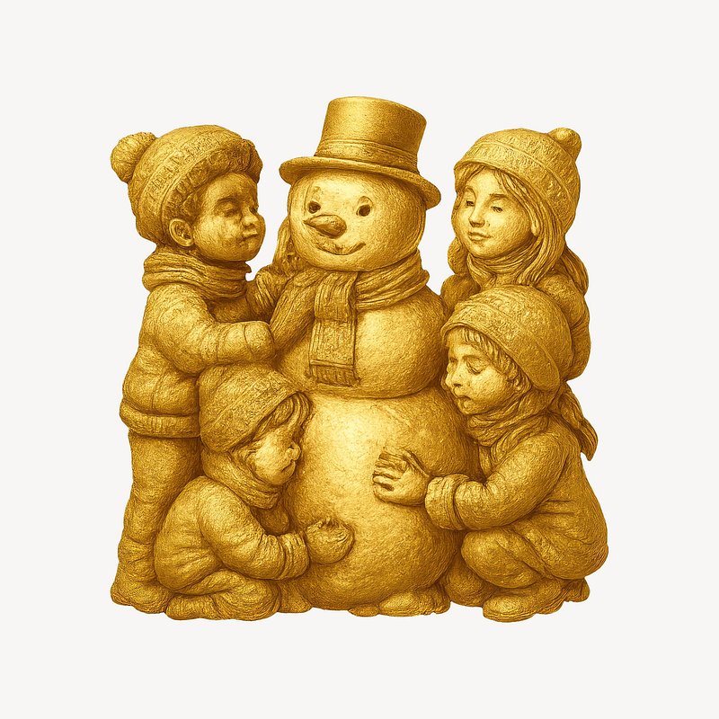 Golden children embracing snowman sculpture. https://www.rawpixel.com/image/22265560/golden-children-embracing-snowman-sculptureView license