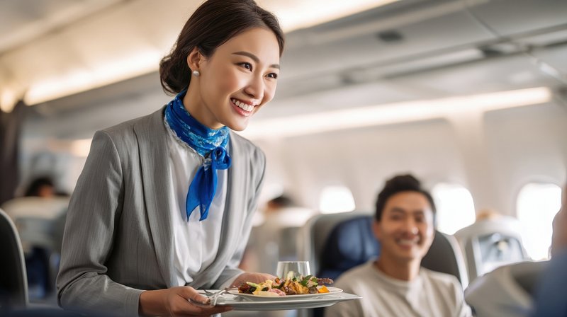 Flight attendant serving meal smiling https://www.rawpixel.com/image/24288879/flight-attendant-serving-meal-smilingView license